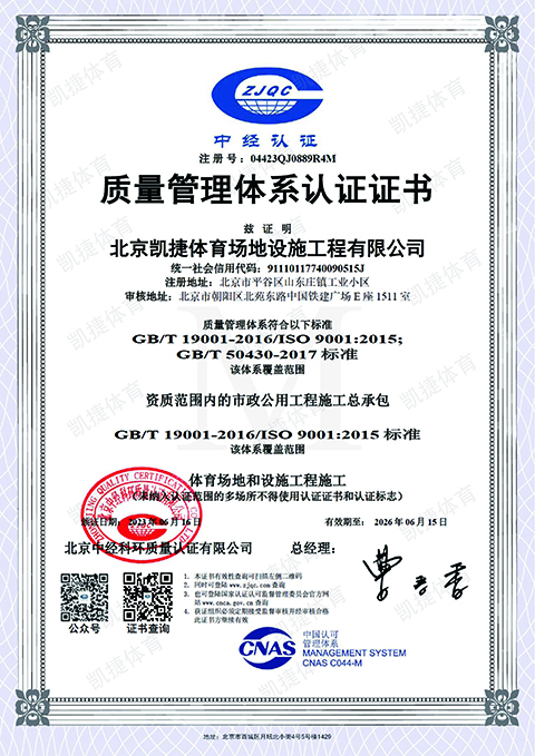质量管理体系认证证书